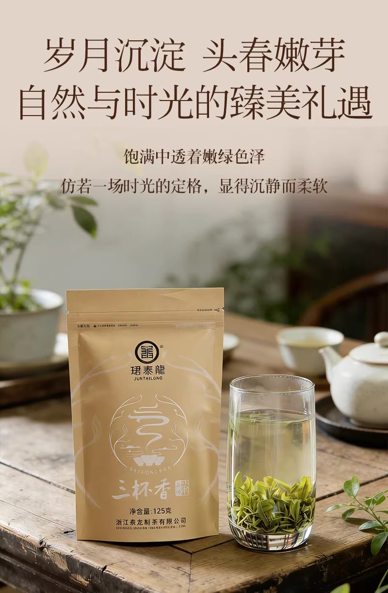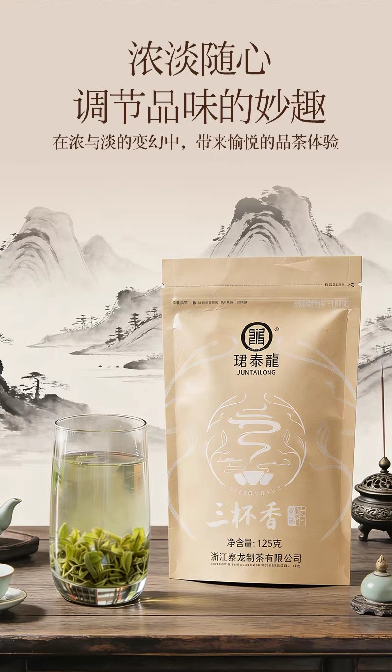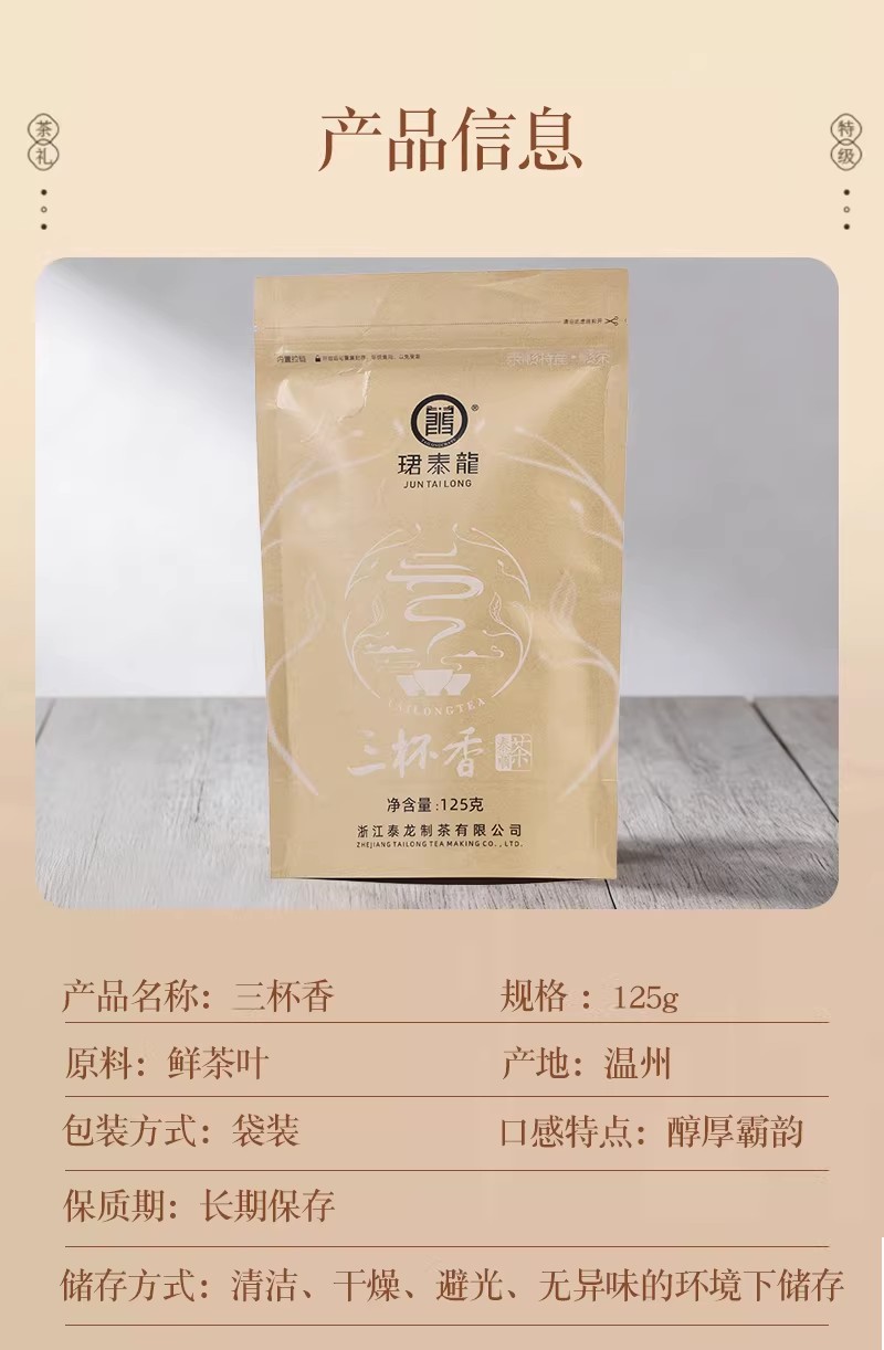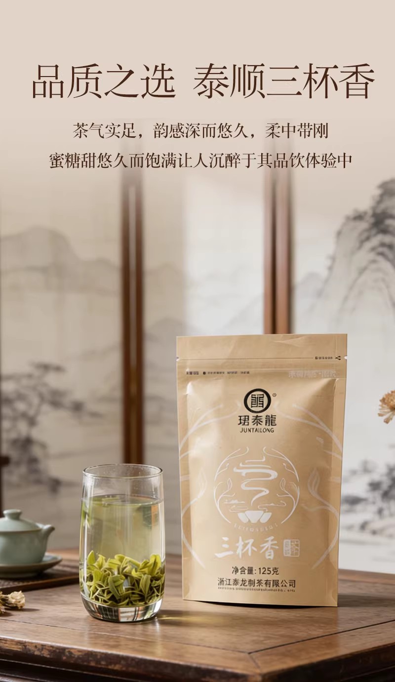 泰顺泰龙三杯香绿茶新茶叶茶明前高山茶经久耐泡茶香醇厚125g袋装